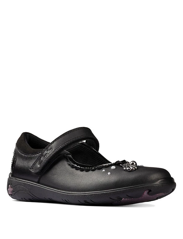 These leather Mary Jane shoes from Clarks have a fun, ocean-themed twist. They feature a classic round-toe style, with an easy riptape bar that kids can fasten themselves. The durable design has a thick, flexible sole and padding to keep young feet comfortable. Kids will love the mermaid detailing on the inner and outer sole, and eye-catching embellishments like the charm and patent shell at the heel.