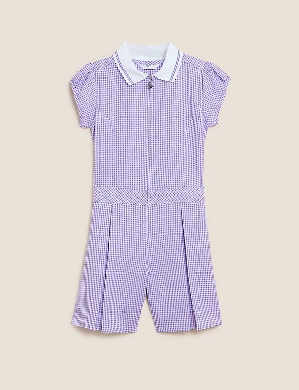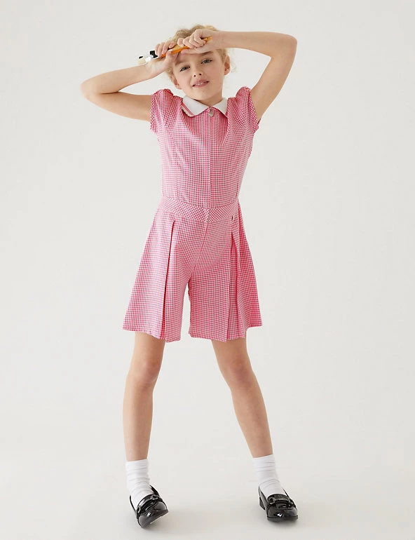 This gingham playsuit is both stylish and practical and offers more freedom to run, jump and climb in full comfort. Two front pleats on shorts. Our easy-to-iron finish ensures it just needs a quick press and it’s ready to go.