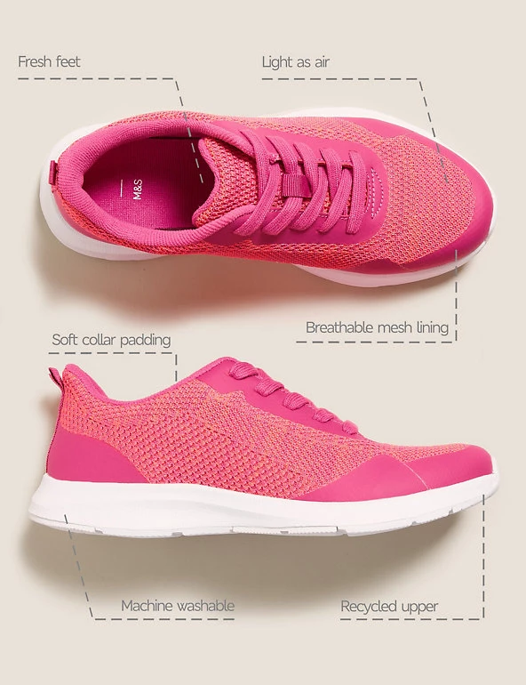 The clever Light As Air™ design and breathable knitted uppers of these kids’ trainers make them ideal footwear for active days. Secure lace-up design, with soft padded collars that protect the ankles. Our Freshfeet™ treatment helps tackle odour-causing bacteria. When these trainers are in need of a clean, simply pop them in the washing machine. Contains recycled materials.