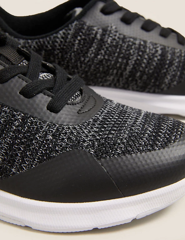 These super-lightweight trainers have a flexible design that’ll keep kids’ feet comfy. Standard fit, with a soft collar and lace-up fastenings. Thick sole with plenty of grip. Made with a textured knitted finish, and a recycled upper, lining and sock. Our bacteria-combatting Freshfeet™ technology helps keep feet fresh. These trainers are machine-washable for easy care.