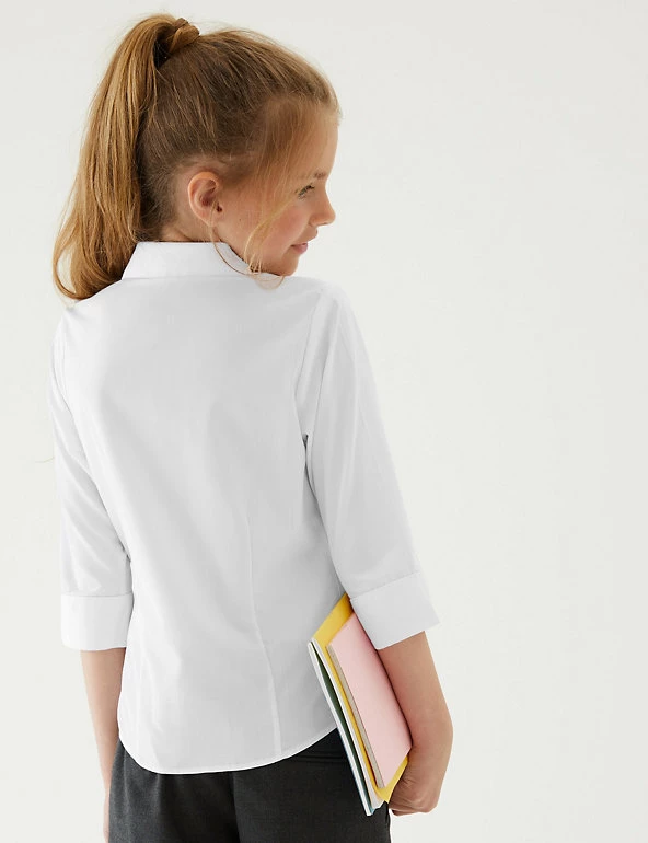 These fashionable school shirts have classic point down collar as well as three quarter sleeves and come in a handy two pack. Completed with our ever so clever Easy to Iron finish, a quick press and they are ready to go. We are transitioning the polyester in this garment to recycled polyester. While we transition, customers may receive items made with either sustainable sourced cotton and recycled polyester or just sustainable sourced cotton and polyester.