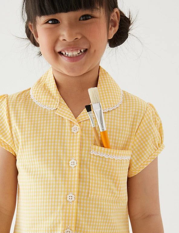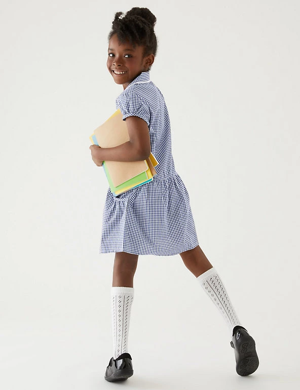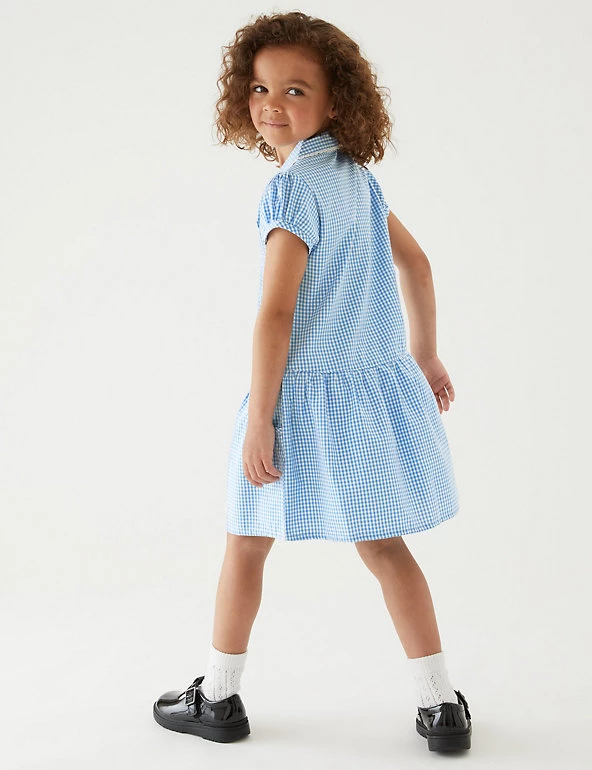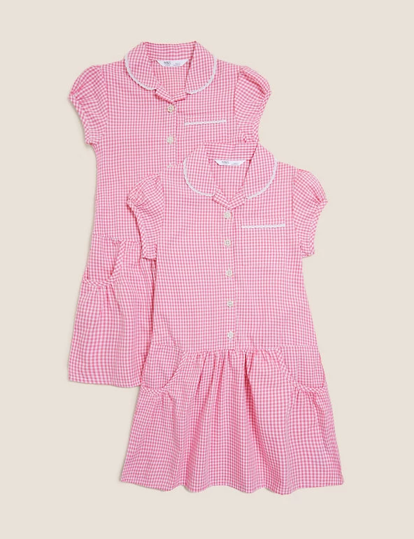 For style and comfort, our two pack gingham dresses are the perfect option. They are made from a cotton-rich fabric for added comfort throughout the day. Smart button-up front and flared skirt with two handy pockets. Easy-to-iron finish means it just needs a quick press and it’s ready to go. We only ever use responsibly sourced cotton for our clothes.