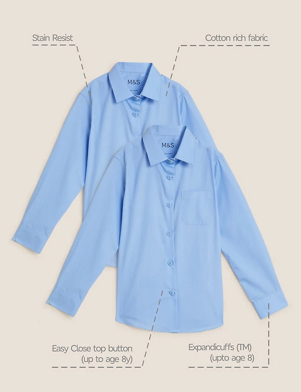 M&S Collection 2pk Girls’ Non-Iron School Shirts (2-18 Yrs)