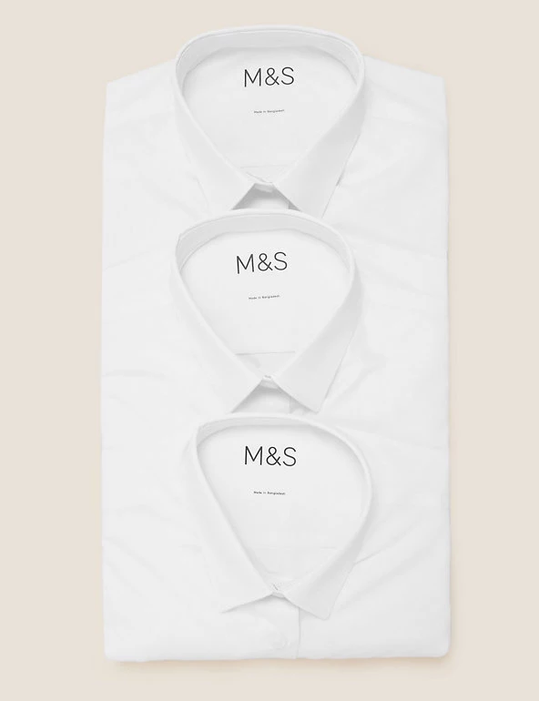 Our three pack of regular fit school shirts are the ultimate school time staple. Each shirt is designed with time saving Easy to Iron technology, a quick press and they are ready to go. For the younger sizes (up to 8 years), they come with our practical Expandicuff™ elastic in the cuff that makes it easier for children to dress and undress. We are transitioning the polyester in this garment to recycled polyester. While we transition, customers may receive items made with either sustainable sourced cotton and recycled polyester or just sustainable sourced cotton and polyester.