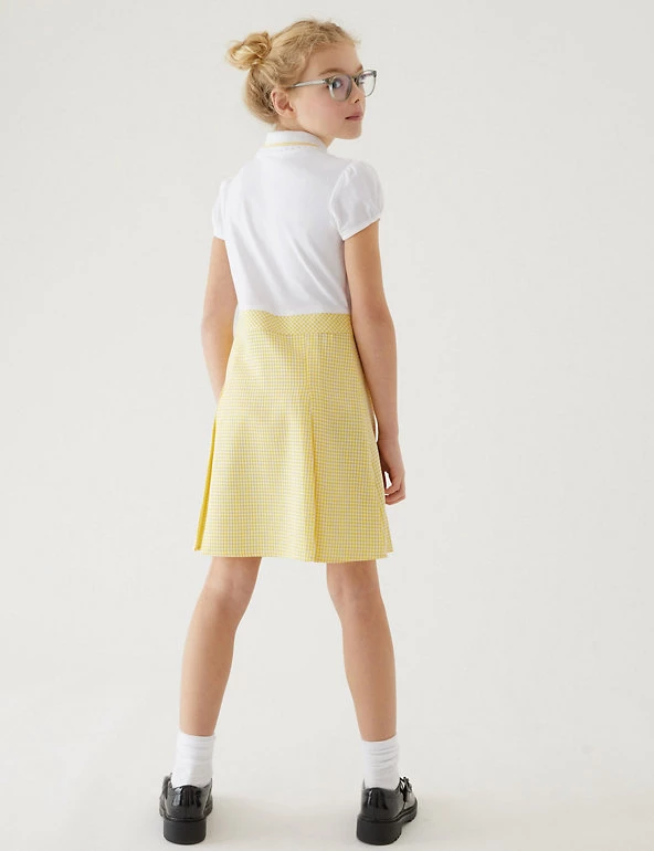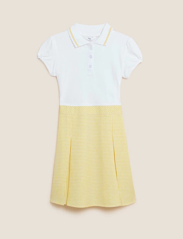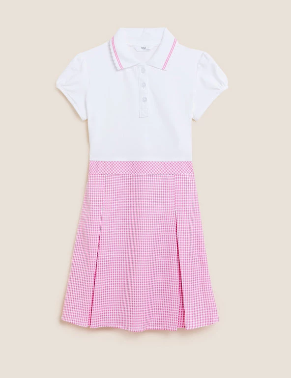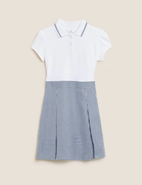 Look smart with this school dress that features a clever 2 in 1 design. Cut in a regular fit with a side zip closure. Polo shirt top half with coordinating gingham skirt. Our easy-to-iron finish means it just needs a quick press and it’s good to go.We only ever use responsibly sourced cotton for our clothes.