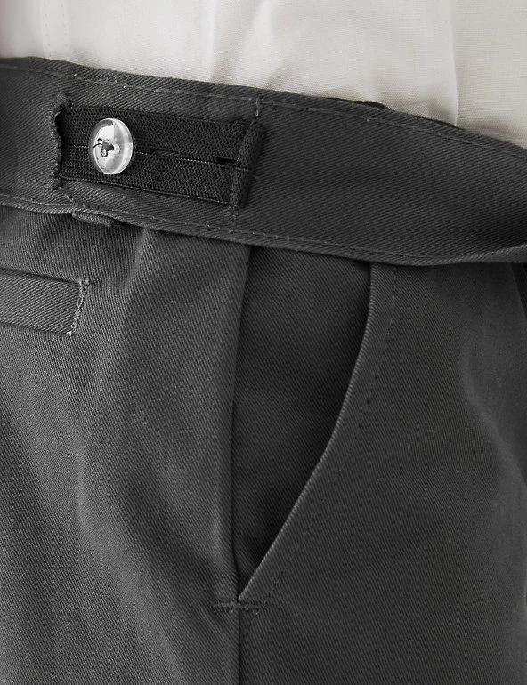 These school trousers are designed to make sure kids stay comfy all day. Made from soft, pure cotton in a classic fit with regular-cut legs. An adjustable waist and grow-proof hems will help them fit all year long. Specially designed for sensitive skin with flat seams and no rough labels or finishes. We only ever use responsibly sourced cotton for our clothes.
