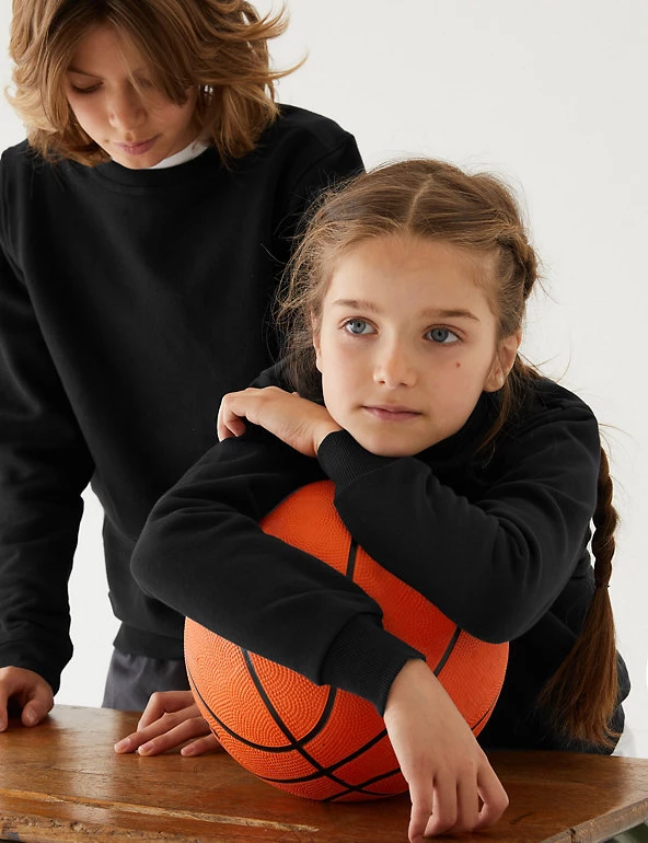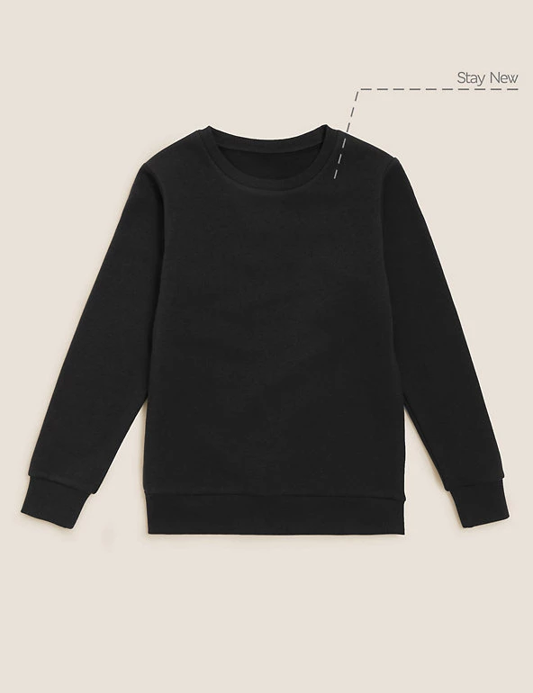 This smart school sweatshirt is made from cotton-rich fabric for a soft and breathable feel. Regular fit with a crew neck. Our StayNew™ technology reduces bobbling and colour loss, keeping their uniform looking newer and brighter for longer. We only ever use responsibly sourced cotton for our clothes.