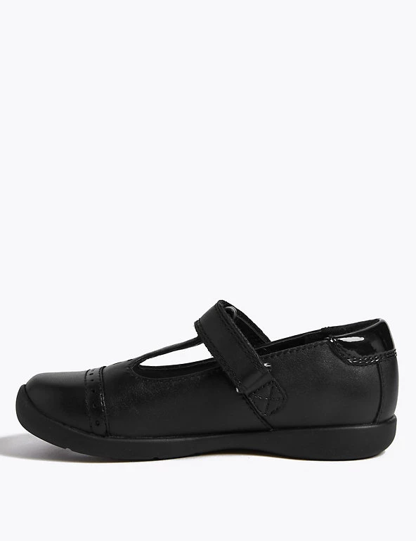 Made in a stylish T-bar design with perforated detailing along the front, these leather school shoes make a smart addition to their uniform. Made with an antibacterial finish they stay fresher for longer, preventing odoursas well as a non marking sole. A riptape fastening helps with easy dressing.