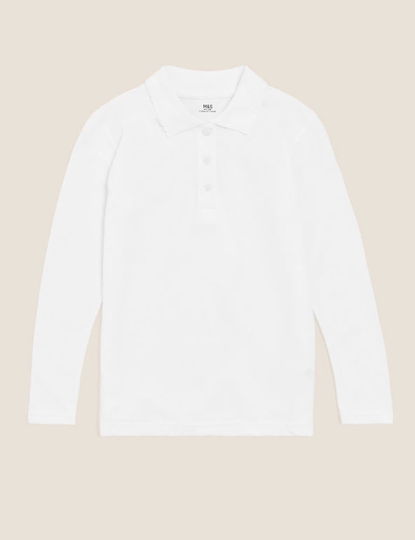 Kit kids out for school with this pure cotton, long-sleeved polo shirt. Regular fit for comfort. Crinkle-cut collar adds a cute touch. Our StayNewâ„¢ technology reduces bobbling, keeping the shirt looking newer and brighter for longer. We only ever use responsibly sourced cotton for our clothes.