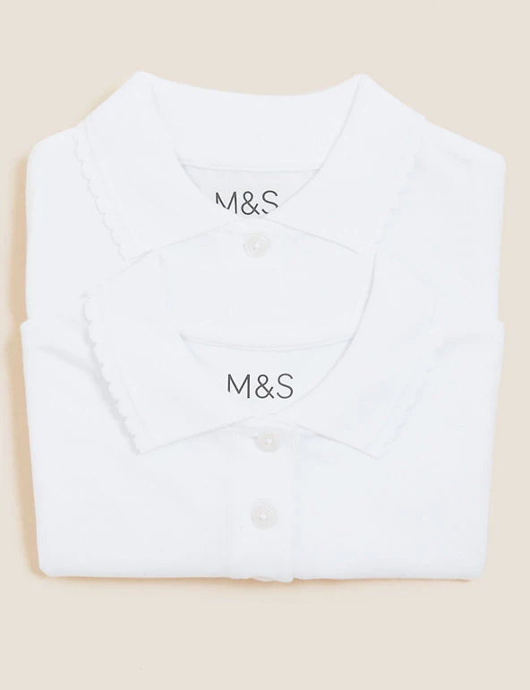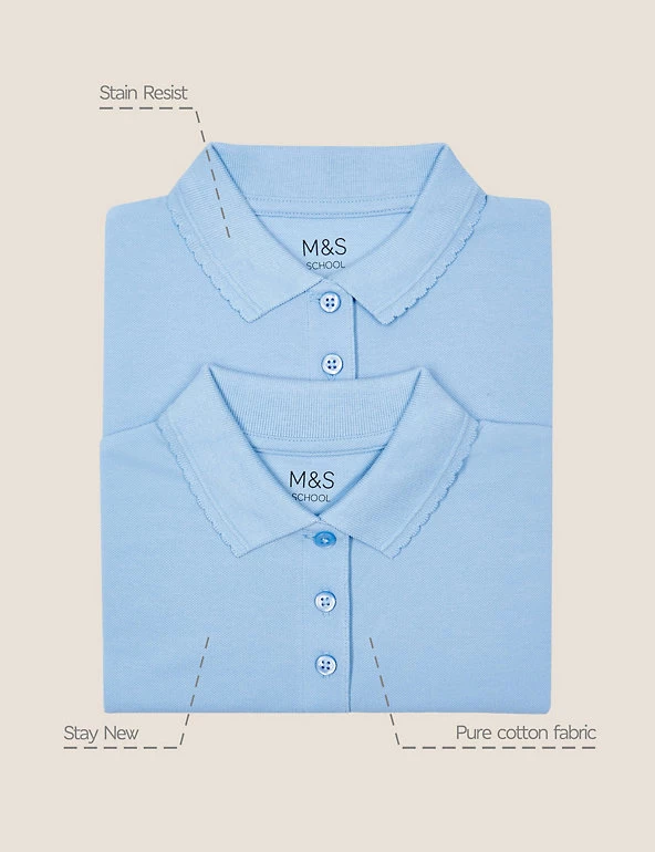 High-quality and durable, these pure cotton multipack regular fit school shirts are stain resistant ensuring protection from spills and splashes . They also come with StayNEWâ„¢ technology that reduces bobbling and colour loss, keeping them looking newer and brighter for longer. These polo shirts have a scallop collar for a stylish look. We are transitioning this garment to organic cotton. While we transition, customers may receive items made with either sustainably sourced cotton or sustainably sourced organic cotton. We only ever use responsibly sourced cotton for our clothes.