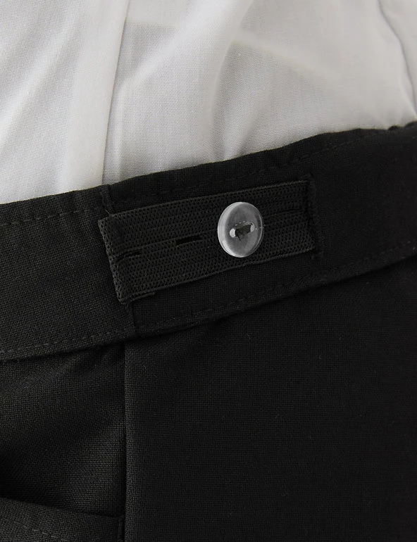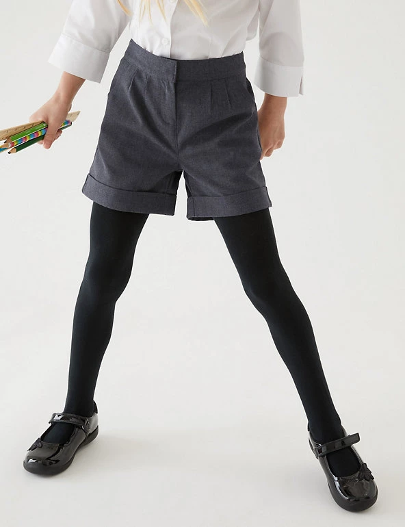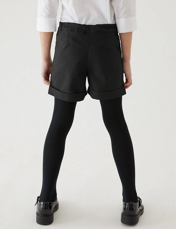 With these turn-up shorts, they can head off to school looking smart and stay that way. A stain and weatherproof finish repels water and stains and crease-resistant technology keep them from getting scruffy. An adjustable waist means kids can keep wearing them as they grow. Made with recycled polyester.