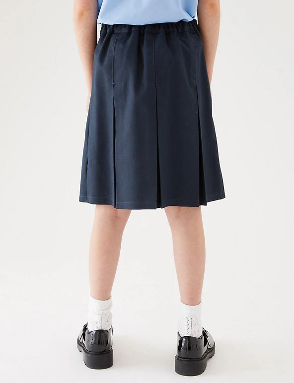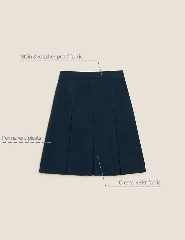 Neat, smart and classic school style is easy to add to any school uniform with our slim fit school skirt. Stain and Weatherproof finish repels water and stains and Crease Resistant material helps creases fall out easily. With Permanent Pleat technology to make sure pleats stay put wash after wash. This slim fit skirt sits closer and has an adjustable waist for perfect fit. Made with recycled polyester and sustainable viscose.