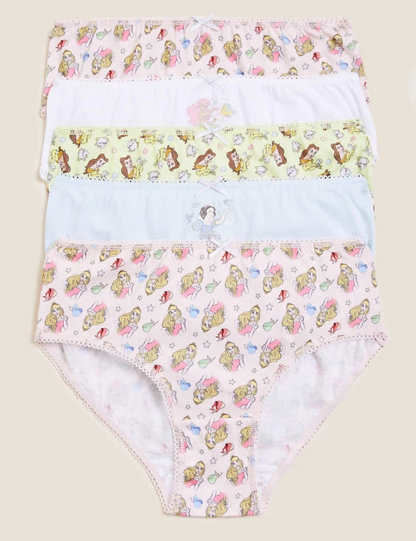 Bring a little magic to every day with this five-pair set of pure cotton Disney Princess™ knickers. The prints feature Belle, Snow White, Aurora and Ariel, and each pair is finished with a picot trim. We only ever use responsibly sourced cotton for our clothes.
